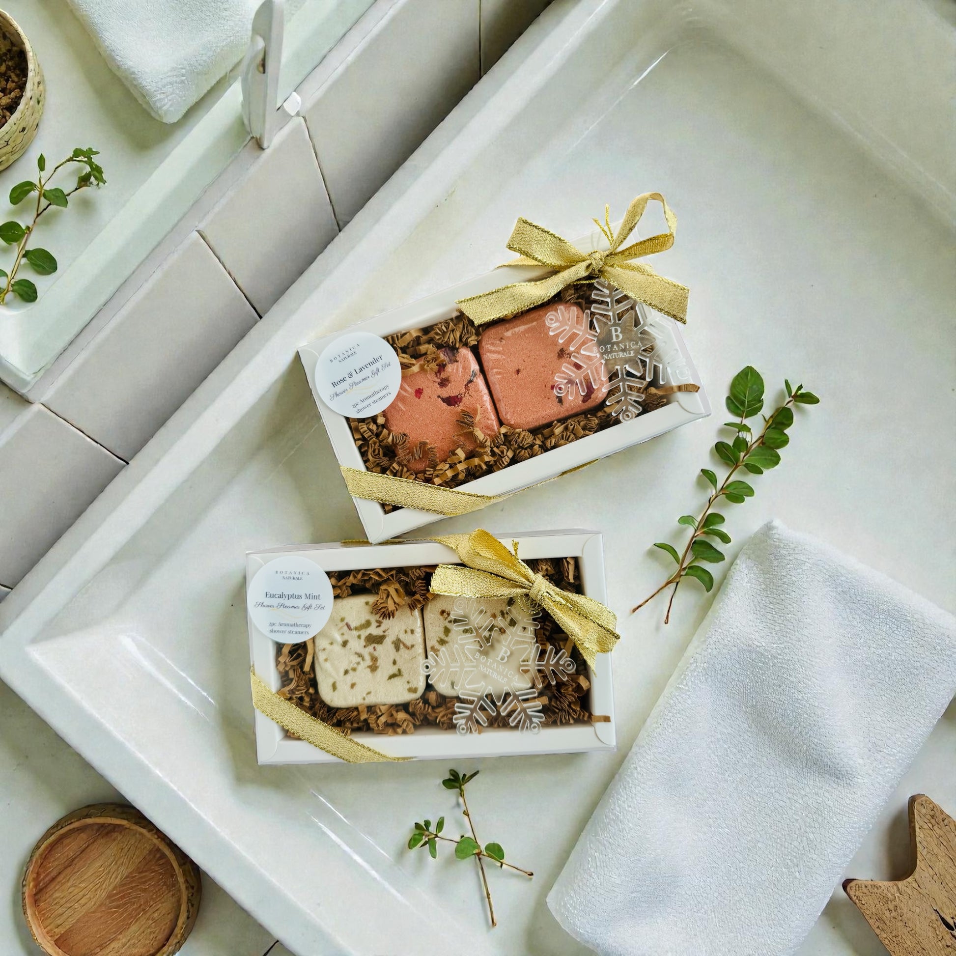 Transform your daily shower into a spa-like sanctuary with this thoughtfully curated 2pc aromatherapy shower steamer gift set. Each steamer releases soothing essential oil vapors as water activates it, turning an ordinary moment into a restorative ritual. Choose between Rose & Lavender for calming relaxation or Eucalyptus Mint for invigorating clarity. Beautifully packaged and ready to give, this set makes the perfect gift of self-care for anyone who deserves a little pampering and wellness in their routine.