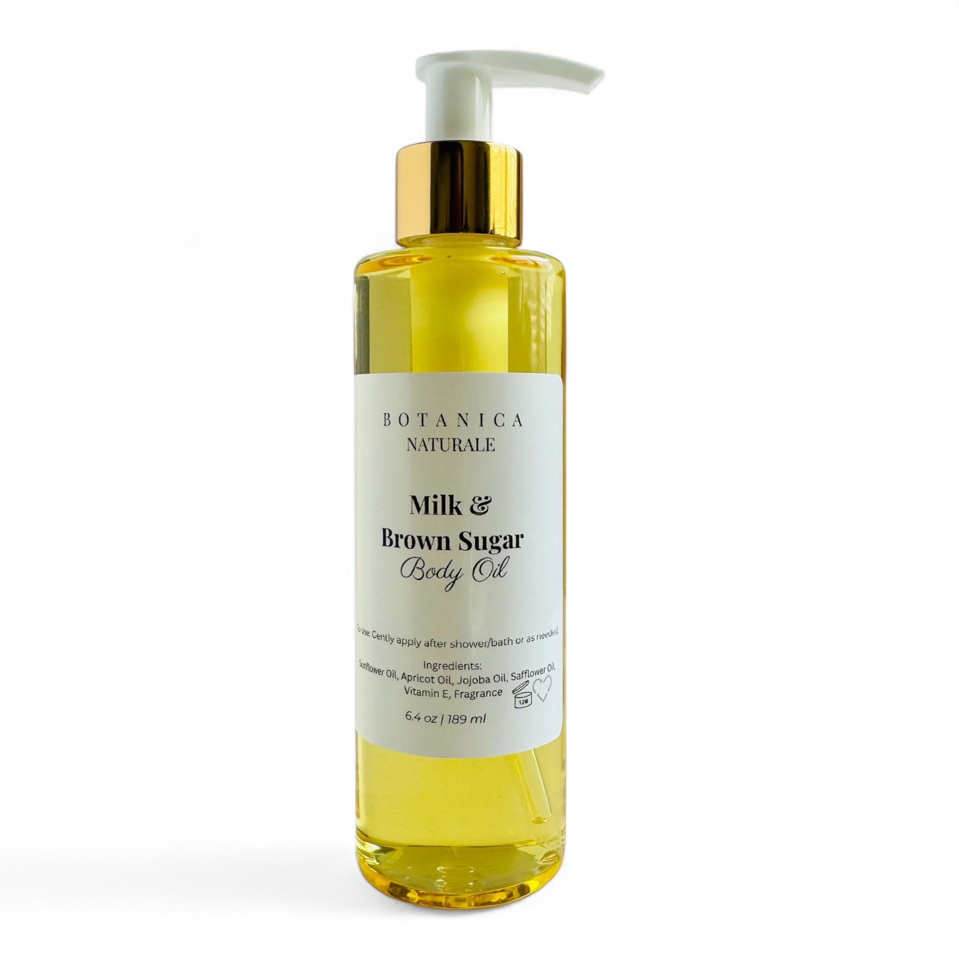 This warm, cozy sensation of our Milk & Brown Sugar Body Oil. Embrace the expertly blended notes of warm vanilla and caramelized brown sugar, while the nourishing plant based oils hydrate your skin. Non-greasy and luxurious, this body oil is the ultimate treat for your skin.